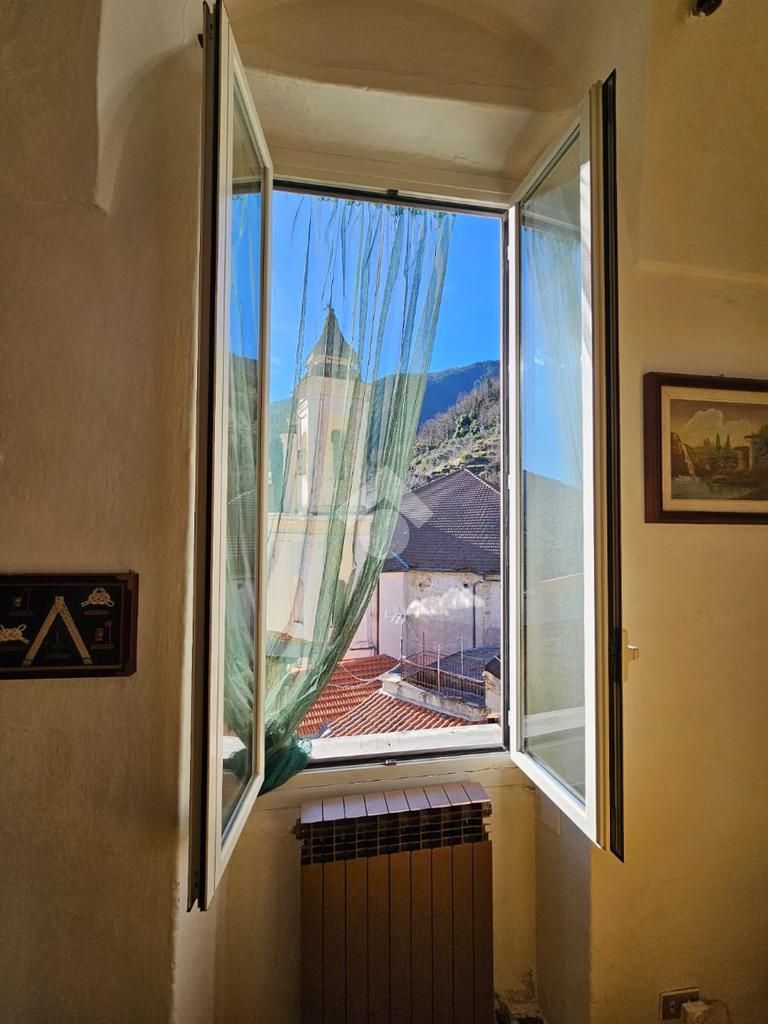 Ci troviamo in Via Celio, nel cuore dei caruggi di Ceriana. L'appartamento è posto al primo piano misura circa 120mq ed è così composto: ingresso in sala, cucina abitabile, tre camere da letto, bagno finestrato, sotto-tetto con altezza vivibile.
